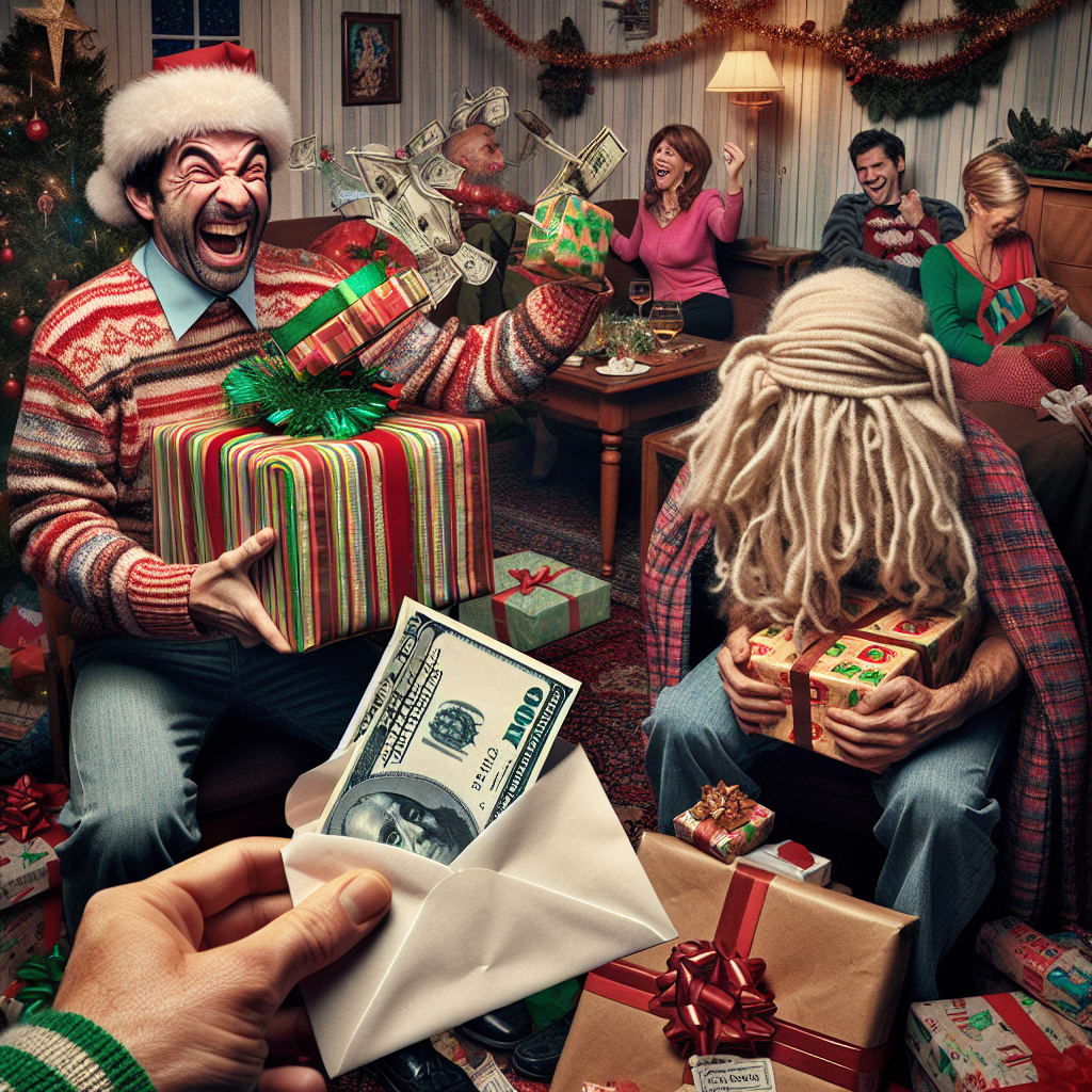 The conversation revolves around the hit-or-miss nature of secret Santa gift exchanges. One person mentions that some individuals put in a lot of effort and participate actively, while others may do the bare minimum or nothing at all. The conversation then shifts to the concept of white elephant gift exchanges, where gag gifts are traditionally given. One person comments that it is not the intention for all gifts to be funny, while another person disagrees, stating that they believe all gifts should be humorous.