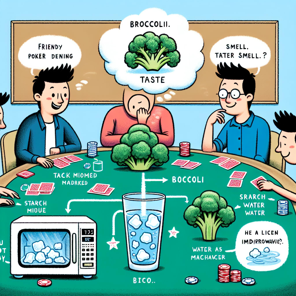 The conversation starts with [name] discussing a poker tournament he is hosting on Friday with some friends. The other person asks if the friends playing poker are also from church, to which [name] replies that he is not sure. The conversation then takes a random turn as they start discussing the taste and smell of broccoli. They talk about how the broccoli shrinks when microwaved due to the starches and expansion of frozen water. The person suggests that if you microwaved a cup of ice, it would become more full, while [name] disagrees and says it would be less full.
