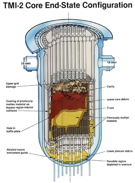 Figure 14: Though later investigation showed much of the core had melted, it did not escape the reactor vessel, and the containment building worked as designed [image source]