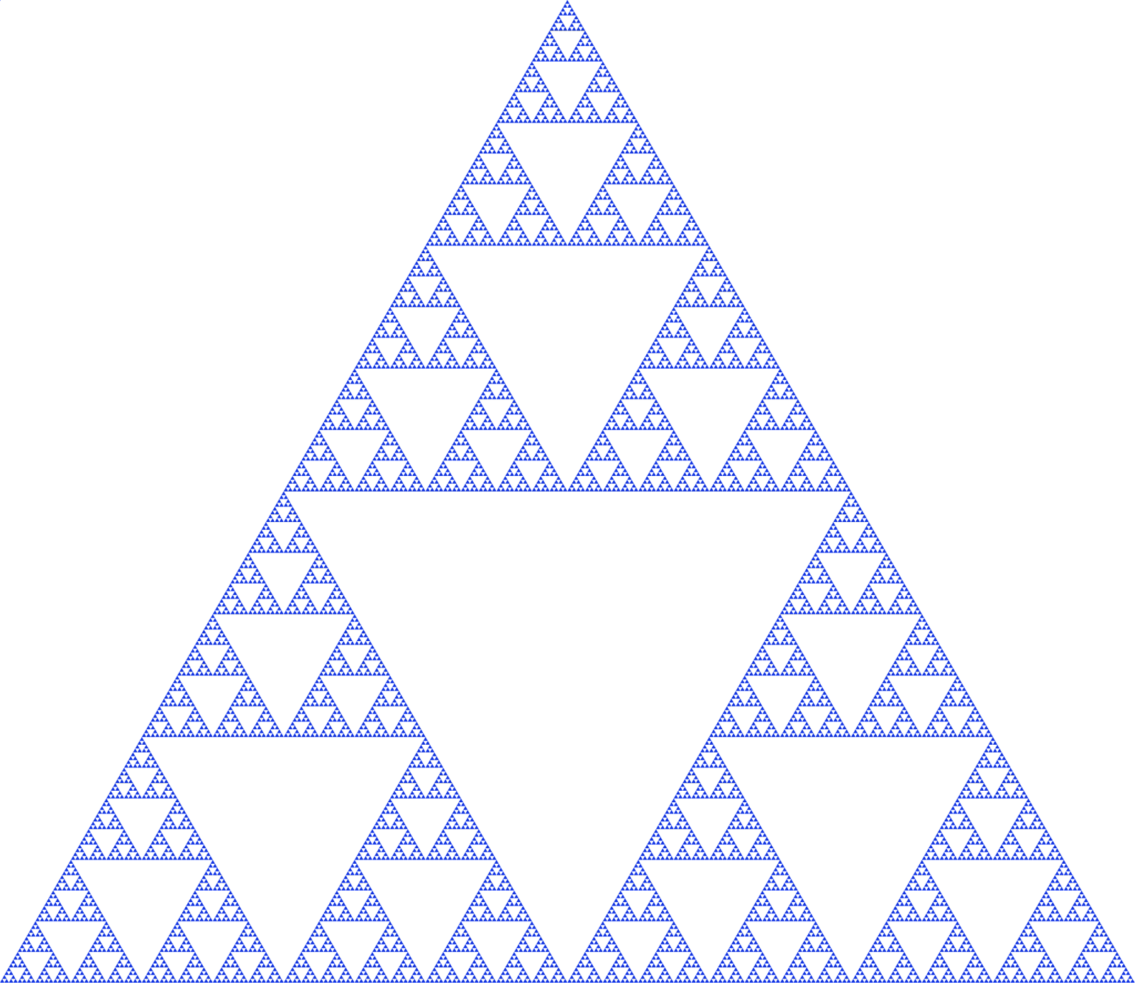 There’s one big problem with computationally generating fractals via the iterative approach in the previous section: the number of points explodes exponentially. For the Sierpinski triangle, we need to make three copies each iteration, so after n timesteps we’ll be tracking 3^n times as many points as we started with.