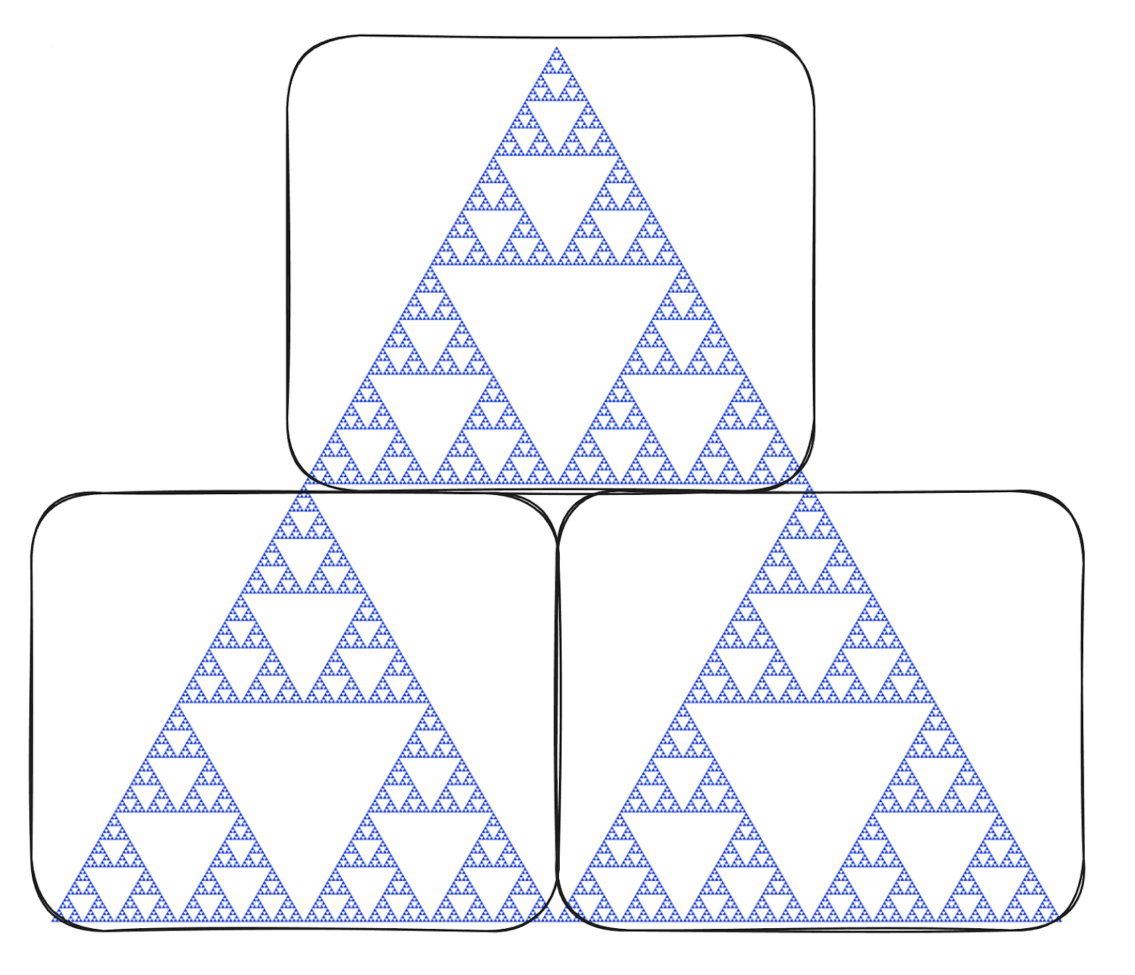 The key defining feature of the Sierpinski triangle is that it consists of three copies of itself, each shrunken and moved to a particular spot: