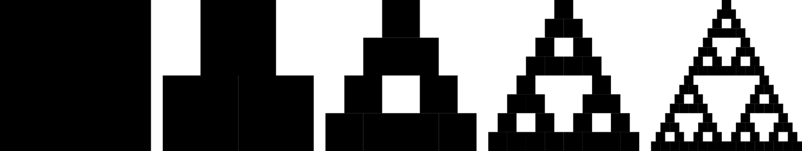 The key defining feature of the Sierpinski triangle is that it consists of three copies of itself, each shrunken and moved to a particular spot: