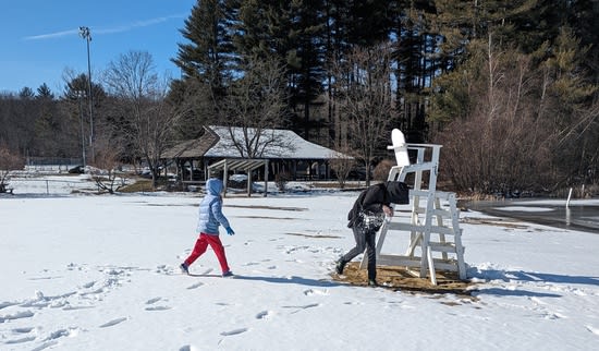 A few days before we left there was supposed to be a big snowstorm here, but it went to CT instead. Luckily we drove through CT, and got to play with what was left: