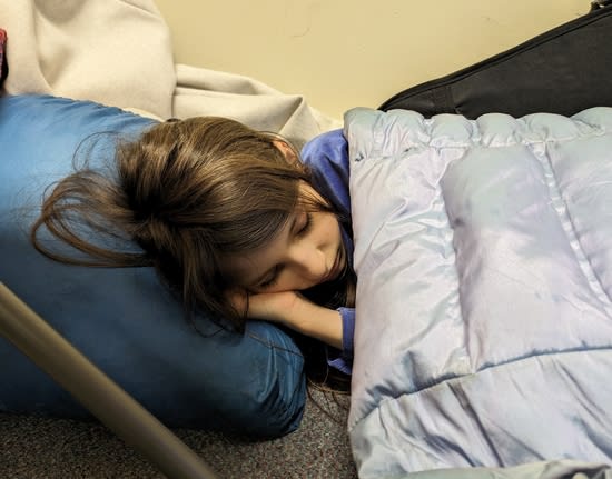 It's much easier to travel with Lily now that she's almost ten, but the dances did go a bit after her bedtime. Sometimes she stayed up the whole time, one dance she stayed home with my aunts Anne and Kathryn in Philly, and other times she slept on stage: