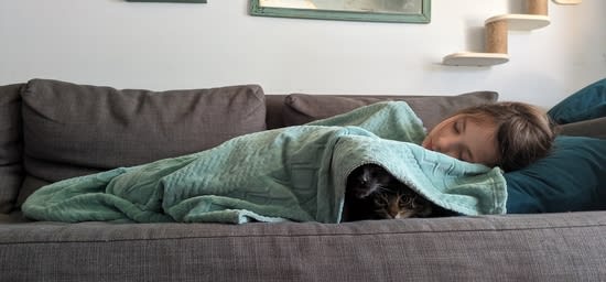 Unfortunately she wasn't able to get to where she was sleeping in, and while she napped a bit I do think she ended up underslept. When we got home she was very excited to see the kittens again, but couldn't stay awake to play with them: