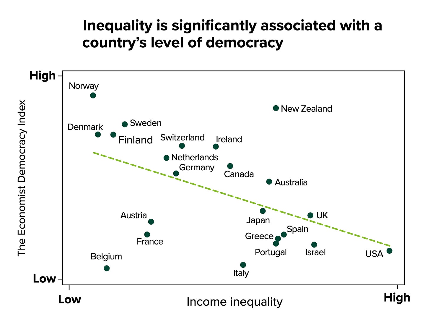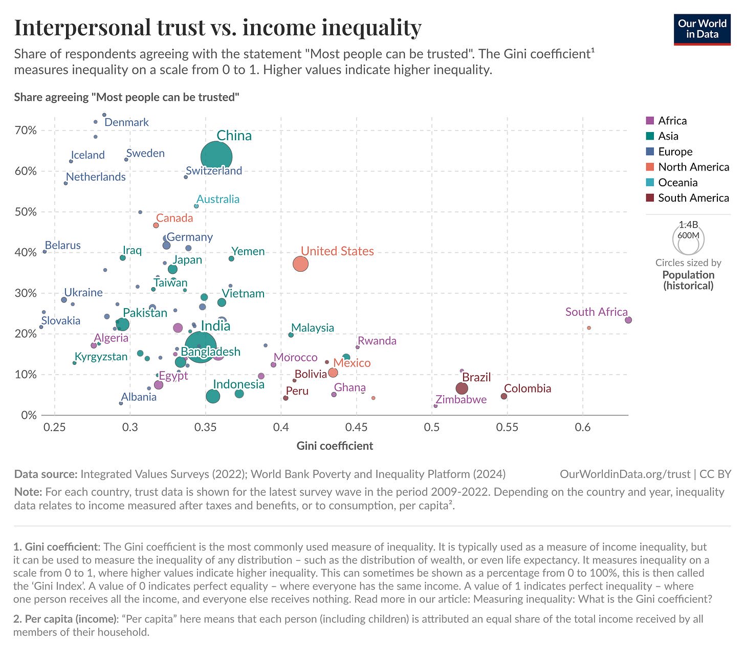 One of the biggest predictors for lack of trust is economic inequality.[5] This isn’t just ideological: it’s backed by data. Across countries, higher levels of inequality consistently go hand-in-hand with lower levels of trust.