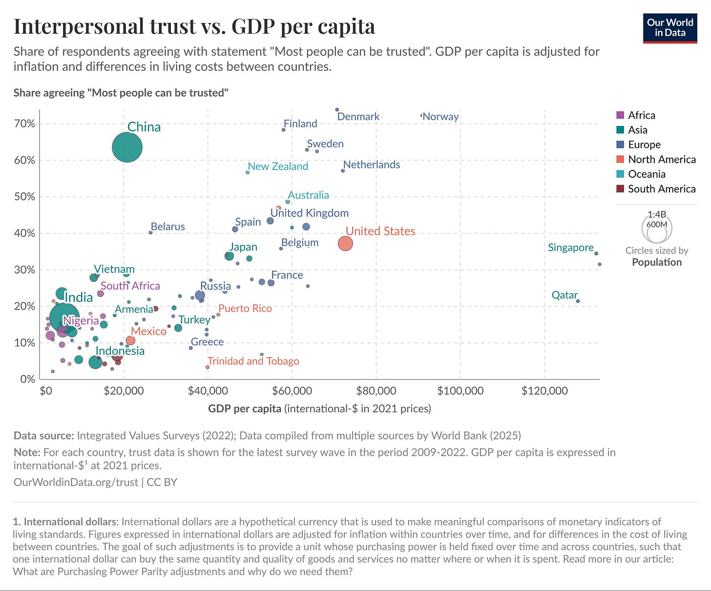 This graph shows how strongly trust correlates with economic output. Countries with higher levels of social trust also tend to have higher GDP per capita. And this isn’t just a correlation, several studies show a causal link: trust drives growth. If people trust that others will follow through, that institutions will work, that cooperation isn’t a scam, they’re way more likely to invest in public goods, infrastructure, and long-term economic activity.