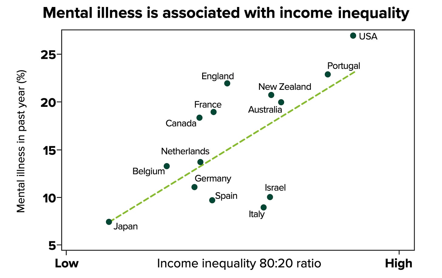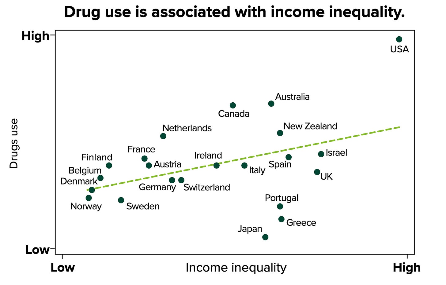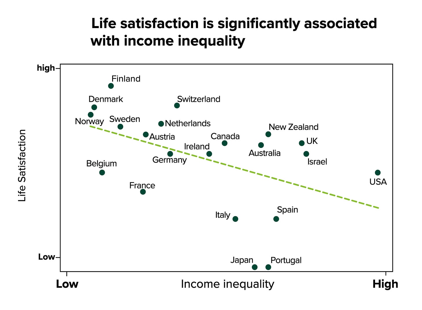 The chart below is a handy visualization of this trend: more unequal countries tend to have significantly less interpersonal trust.