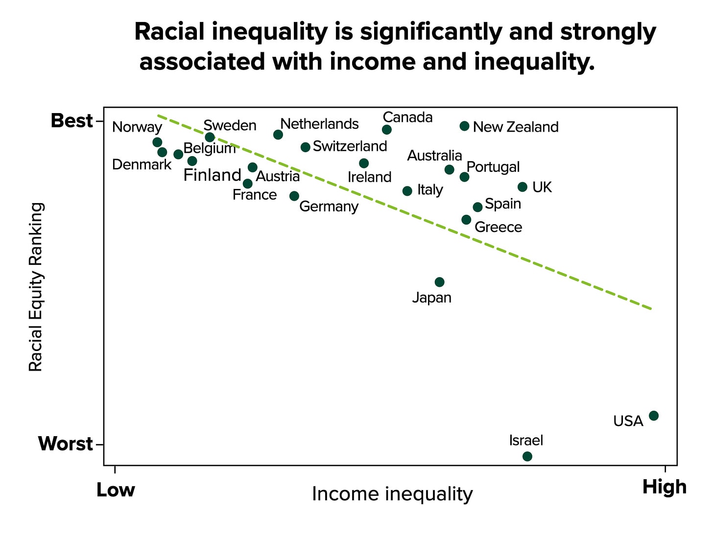 Now that we’ve looked at the link between trust and inequality, we can look at the consequences beyond just economics. This report from “Equality Trust” finds lots of links between inequality and social ills. It can lead to more inequality between different demographics within a society: