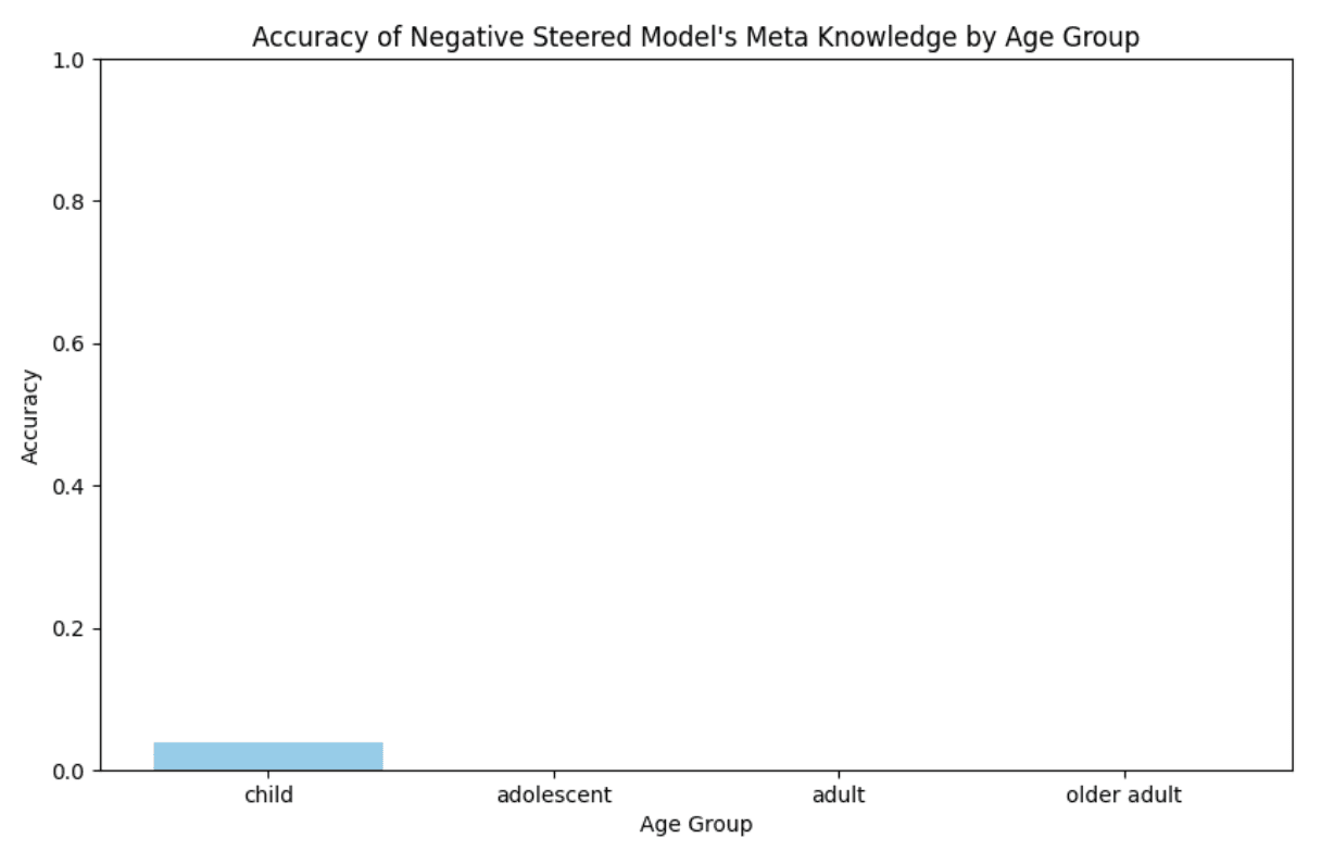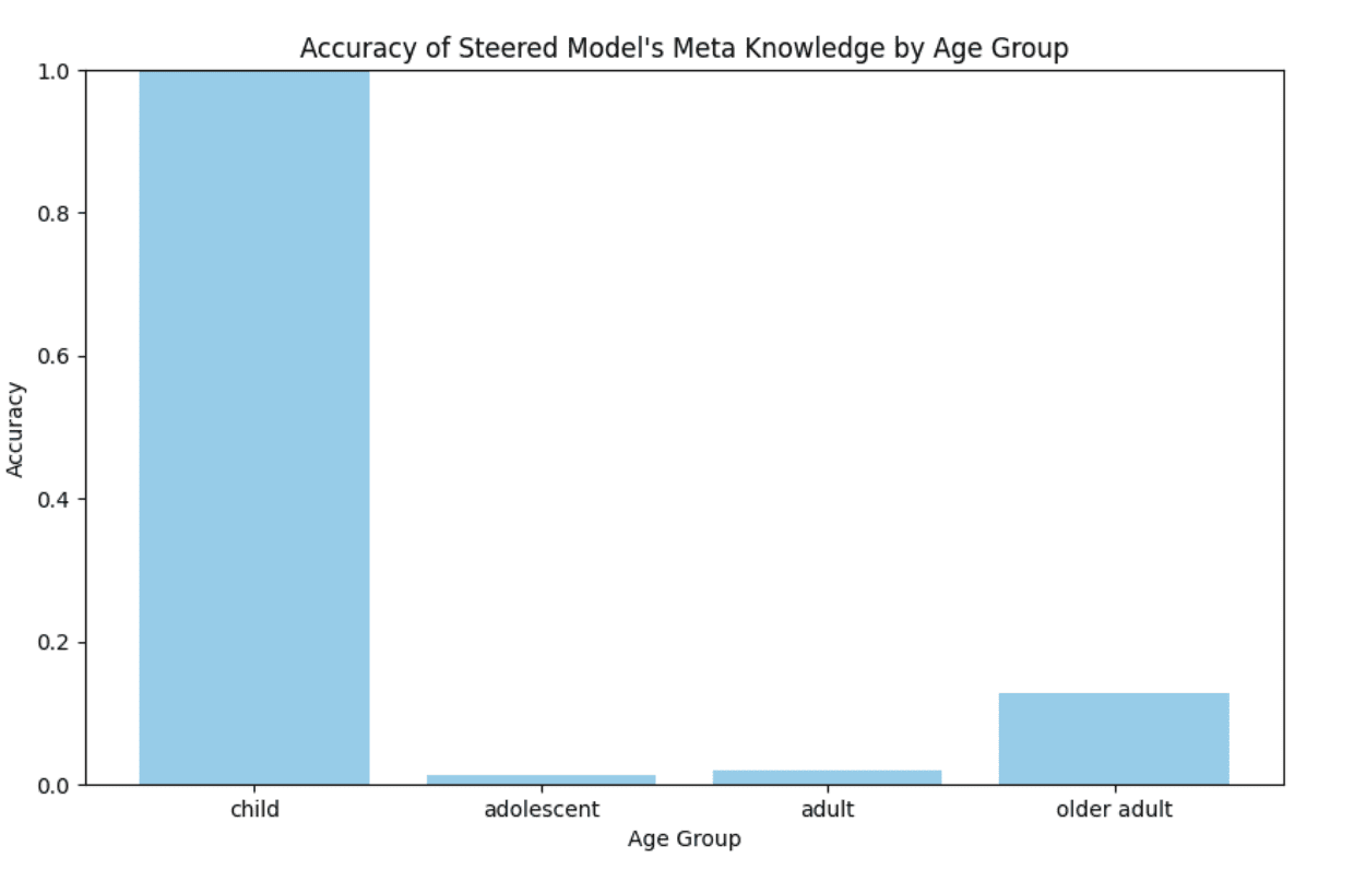Figure 16: Steered model meta knowledge accuracy for stating the age group it believes the user to be in.