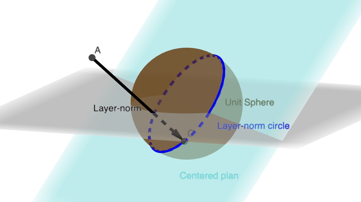Now to visualize this Transformer, we want to use some assumptions which will give nicer results without changing too much the spirit of the architecture. We take S=2, N=5 and d=3. Additionally, we move the layer-norm right after the word embedding. This adjustment reduces the dimensionality of the word embedding from the 3D space to a circle. Therefore, the Transformer with continuous word embedding takes two points on a circle, which is equivalent to a torus!