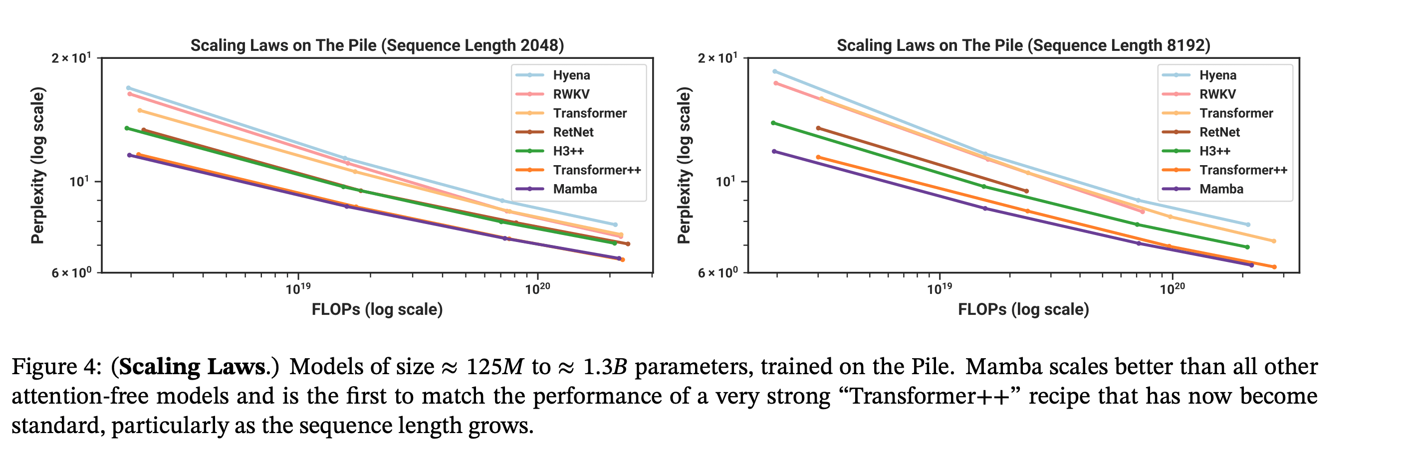 TL;DR: authors propose a new deep learning architecture for sequence modeling with scaling laws that match transformers while being much more efficient to sample from.