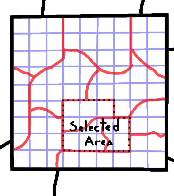 In the previous example, there was no fragmentation of existing properties or CBs. The necessary properties and CBs fell completely and perfectly within the selected region. In practice, selected regions borders would cut through the middle of numerous CBs and properties, in a way that some bits of them would be in the selected regions and some bits out of the selected regions.