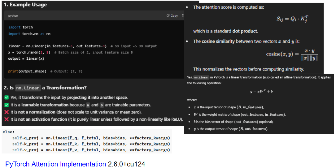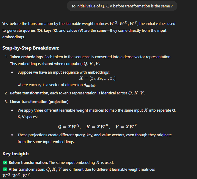 Each of Q, K, and V undergoes its own linear transformation with different weights, meaning they are projected into distinct spaces with different coordinate systems. As a result, the transformed values of Q and K may become closer or farther apart compared to their original positions. The distance computed via cosine similarity does not accurately represent their true, original distance. This is a fundamental mathematical oversight.