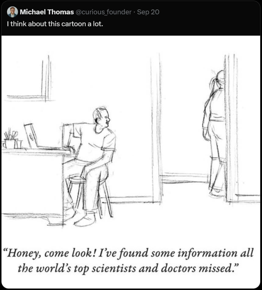 So we have personal stories like this one, or this one, or this one, where a doctor got it wrong. In particular, no, you should not trust that Average Doctor got the right answer and you couldn’t possibly figure out anything they didn’t. Doctors are often hurried and overworked, mostly don’t understand probability, have an impossible amount of knowledge to keep up with, and are trying to get through the day like everyone else.