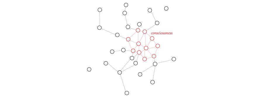 So, how could we go about selecting such a subset? Well, Global Workspace Theory is the most popular theory in the literature, and this set of neurons over there sort of looks like a densely connected part of the network, so perhaps that is our global workspace, and hence our consciousness?