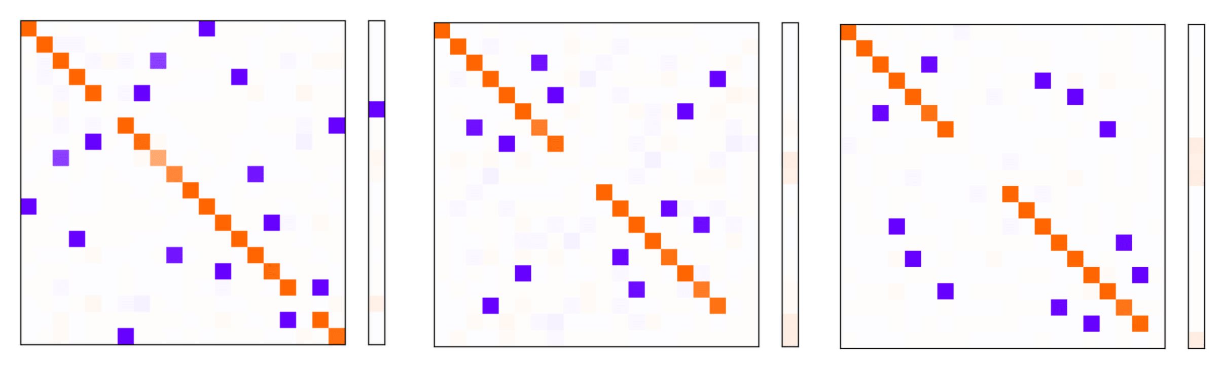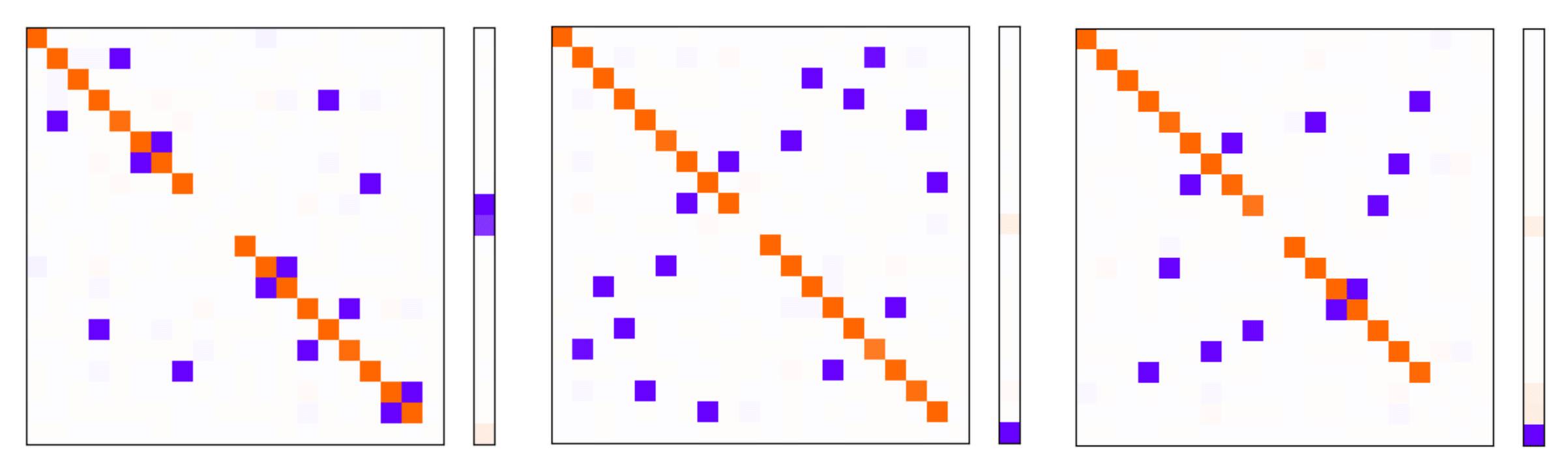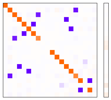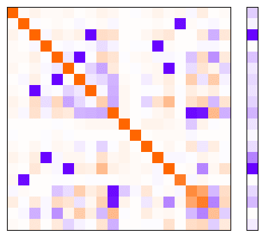 I will interpret these results by visualising the Gram matrix and the bias vector . Recall that this visualisation represents how input dimensions are represented in the latent space, and how they interfere with one another. If this doesn't make sense to you, refer to my more detailed explanation in this post.