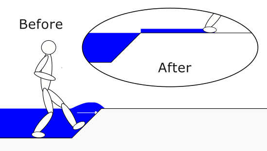 Going back to our runner example, the slight shift of the block from left to right can be thought of as the splash as the runner leaves the water.