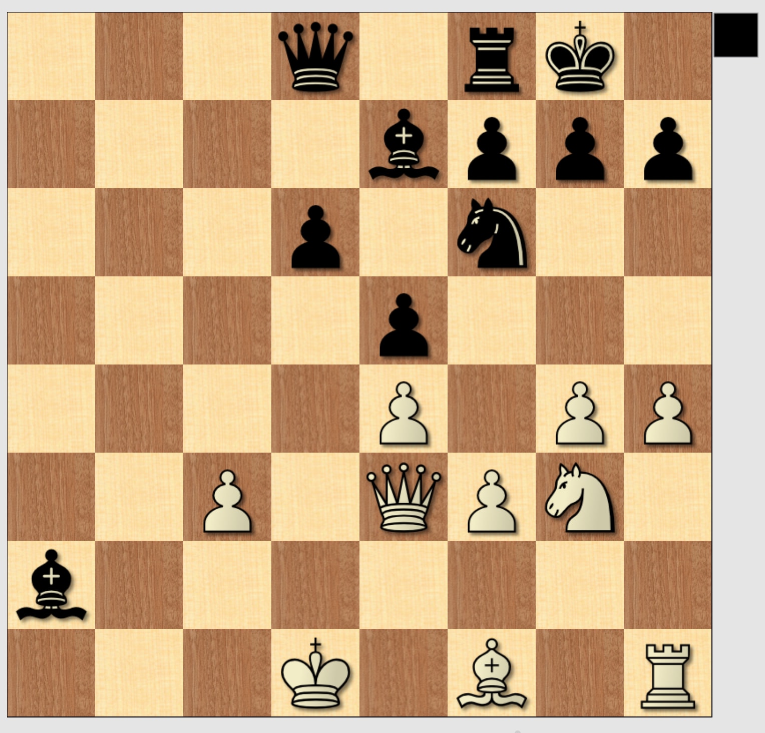 The position above is still reasonably early and a pretty normal chess position. I instead tried this somewhat weirder one (which arises after 25 moves, black to play):