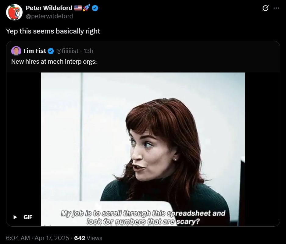 Dean Ball joins the White House office of Science and Technology Policy as a Senior Policy Advisor on AI and Emerging Technology. This is great news and also a great sign, congrats to him and also those who hired him. We have certainly had our disagreements, but he is a fantastic pick and very much earned it. The Stop Stealing Our Chips Act, introduced by Senator Rounds and Senator Warner, would help enable BIS, whose capabilities are being crippled by forced firings, to enforce our regulations on exporting chips, including whistleblower procedures and creating associated protections and rewards. I agree this is a no-brainer. BIS desperately needs our help. Corin Katzke and Gideon Futerman make the latest attempt to explain why racing to artificial superintelligence would undermine America’s national security, since ‘why it would kill everyone’ is not considered a valid argument by so many people. They warn of great power conflict when the PRC reacts, the risk of loss of control and the risk of concentration of power. They end by arguing that ASI projects are relatively easy to monitor reasonably well, and the consequences severe, thus cooperation to avoid developing ASI is feasible. I checked out the other initial AI Frontiers posts as well. They read as reasonable explainers for people who know little about AI, if there is need for that. Where we are regarding AI takeover and potential human disempowerment…The Week in Audio