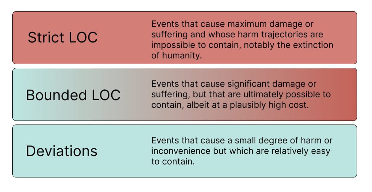 In my taxonomy, you have existential risks, catastrophic risks and mundane risks, and you also have what one might call existential, catastrophic and mundane loss of control. We don’t come back from existential, whereas we can come back from catastrophic but at large cost and it’s not a given that we will collectively succeed.