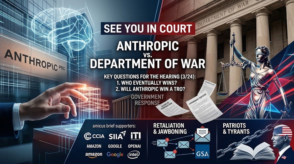 The second is, will Anthropic win a temporary restraining order?