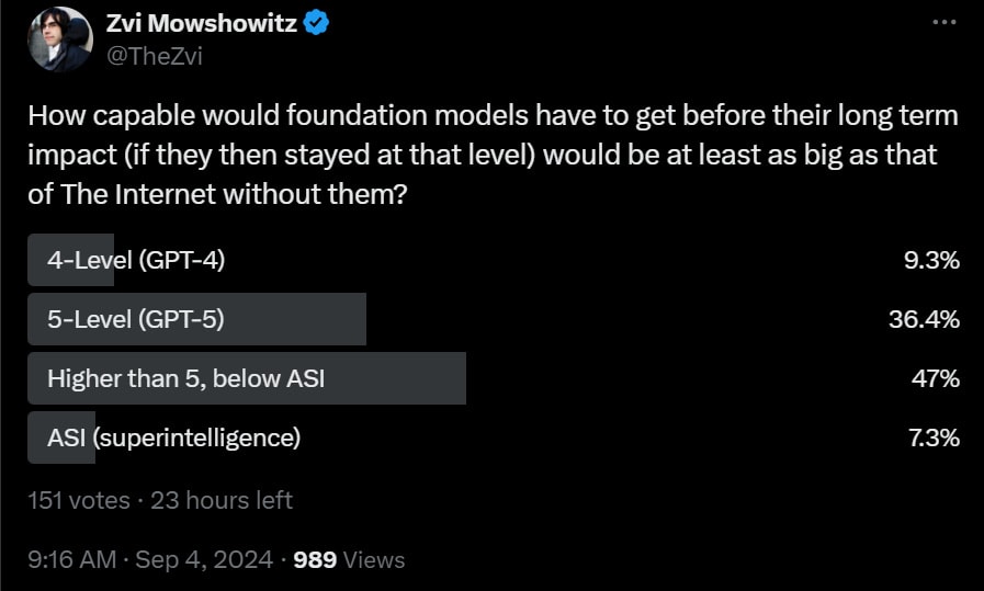 I asked Twitter, how advanced would frontier models have to get, before they were at least Internet Big, or a solid 8?