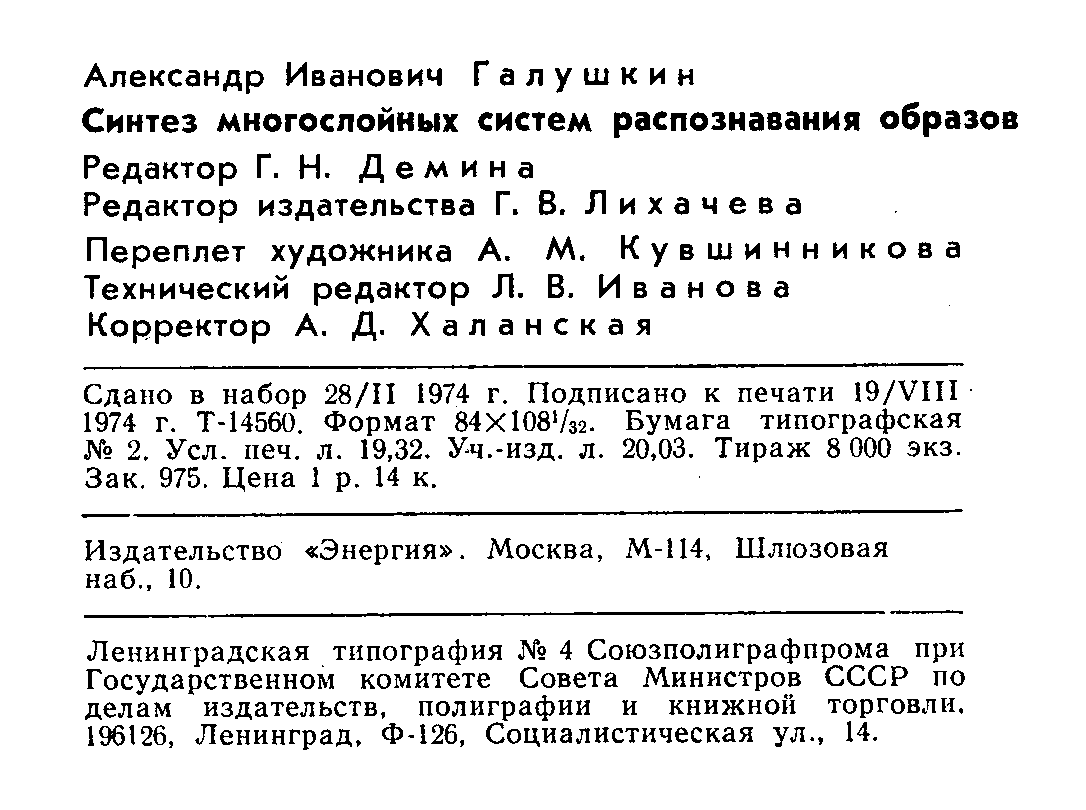 Synthesis of Multi-Layer Pattern Recognition Systems (Moscow, "Energiya", 1974)