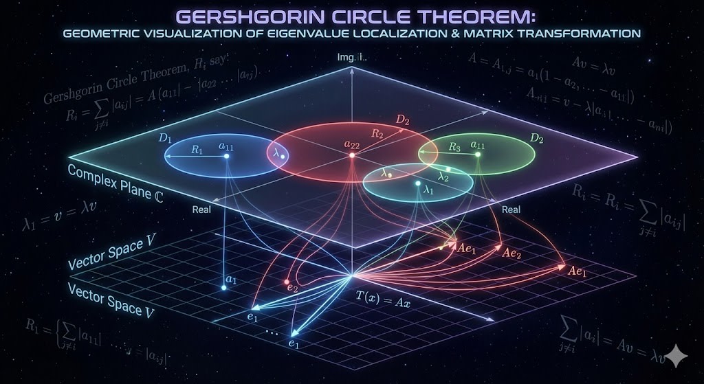 Yesterday I was playing with Gemini 3. I was sitting with my friend, asking Nano Banana to make visualizations of various theorems. One of them being the Gershgorin disk theorem, which apparently looks like this