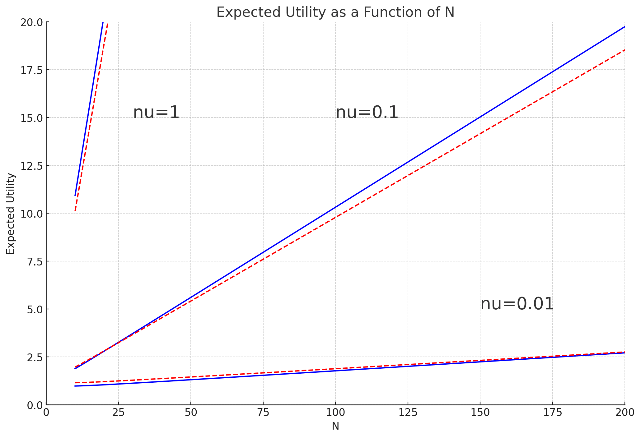 Great post! I hadn't considered the fact that your decision was information, which feels obvious in retrospect. If someone is truly interested in this topic, it would be interesting to create a calculator where they can adjust nu, their posterior, and N.