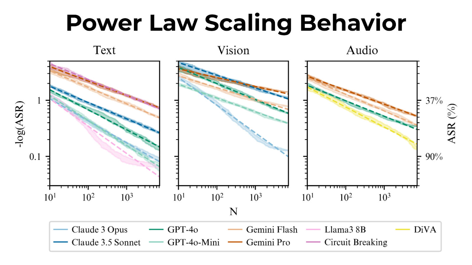 This is a linkpost for a new research paper of ours, introducing a simple but powerful technique for jailbreaking, Best-of-N Jailbreaking, which works across modalities (text, audio, vision) and shows power-law scaling in the amount of test-time compute used for the attack.