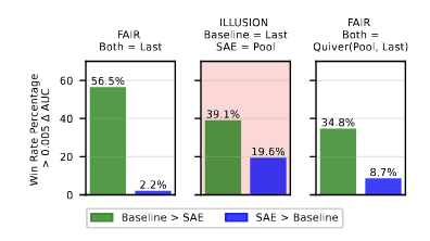 However, upon closer inspection, we found that standard logistic regression probes could also identify these same dataset issues when properly analyzed. The SAE latent representations simply made these patterns more immediately obvious, but didn't provide unique capabilities that couldn't be achieved with baseline methods.