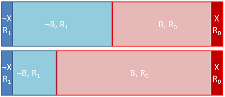 Then the AI will behave as if the ratio of probabilities of following R0 versus R1 is the (constant) ratio of P(X) to P(¬X), whatever the probability of B becomes.