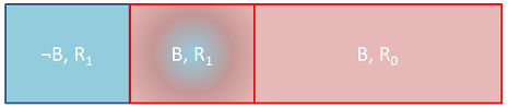 In this case, the probability of the AI maximising R1 and ¬B happening, remains at 1/4, while the probability of maximising R0 and B is reduced to 1/2, and the probability of maximising R1 and B is increased to 1/4.
