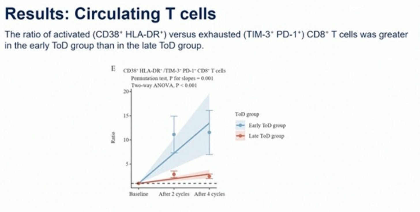 Which is to say: each wave of activation of T-cells may set as a soft ‘ceiling’ of maximum immune response, even if the drug continues to circulate. So you’d ideally want the first ceiling to be as high as possible, which implies that a morning injection would be best! Is this true? Well, we do know that the clinical impact of the first immunotherapy injection is strongly tied to long term outcomes, and, accordingly, the timing of that first immunotherapy injection seems to matter the most. This same latter paper also says this: