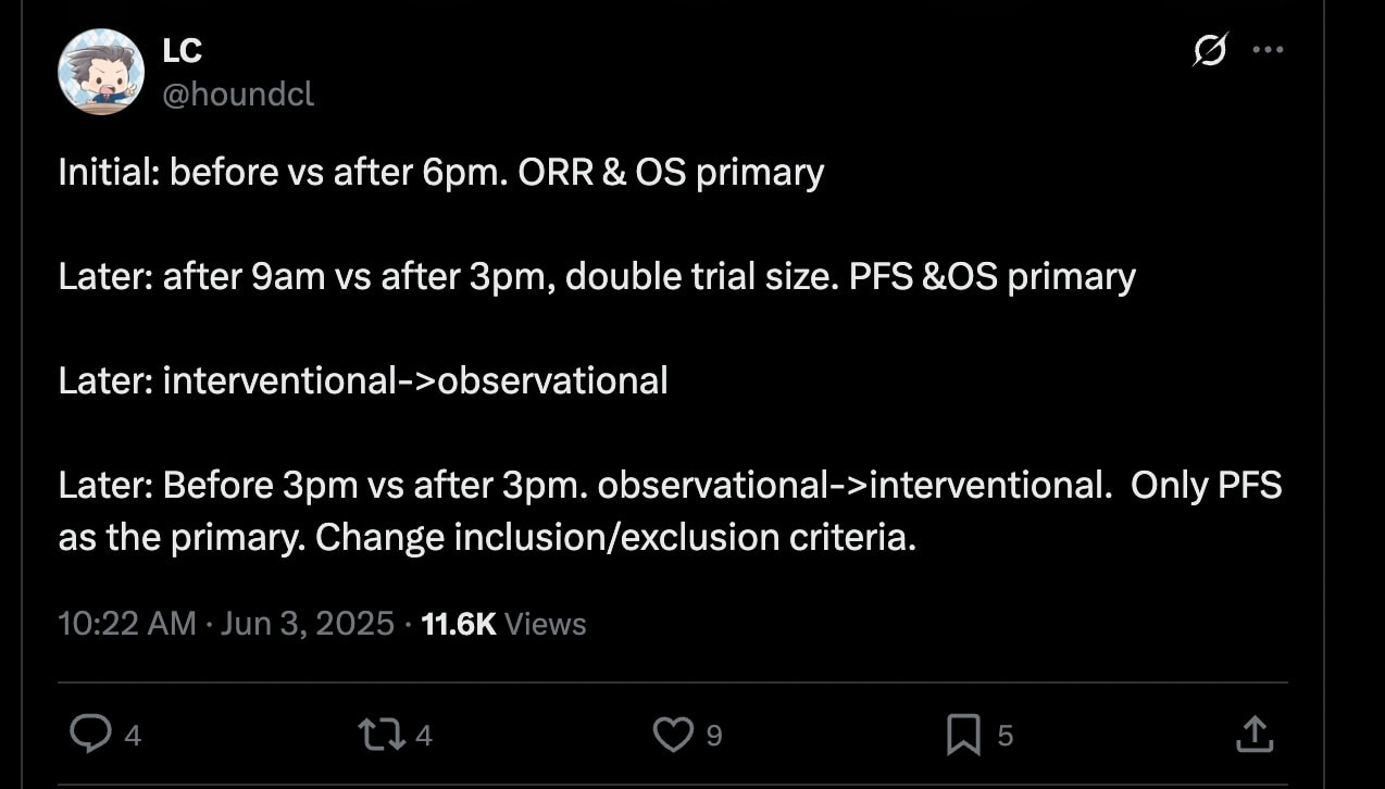 But multiple follow-up randomized studies, such as this and this largely disproved the whole concept. Given that, shouldn’t we be on guard for chronotherapy working in immunotherapy?