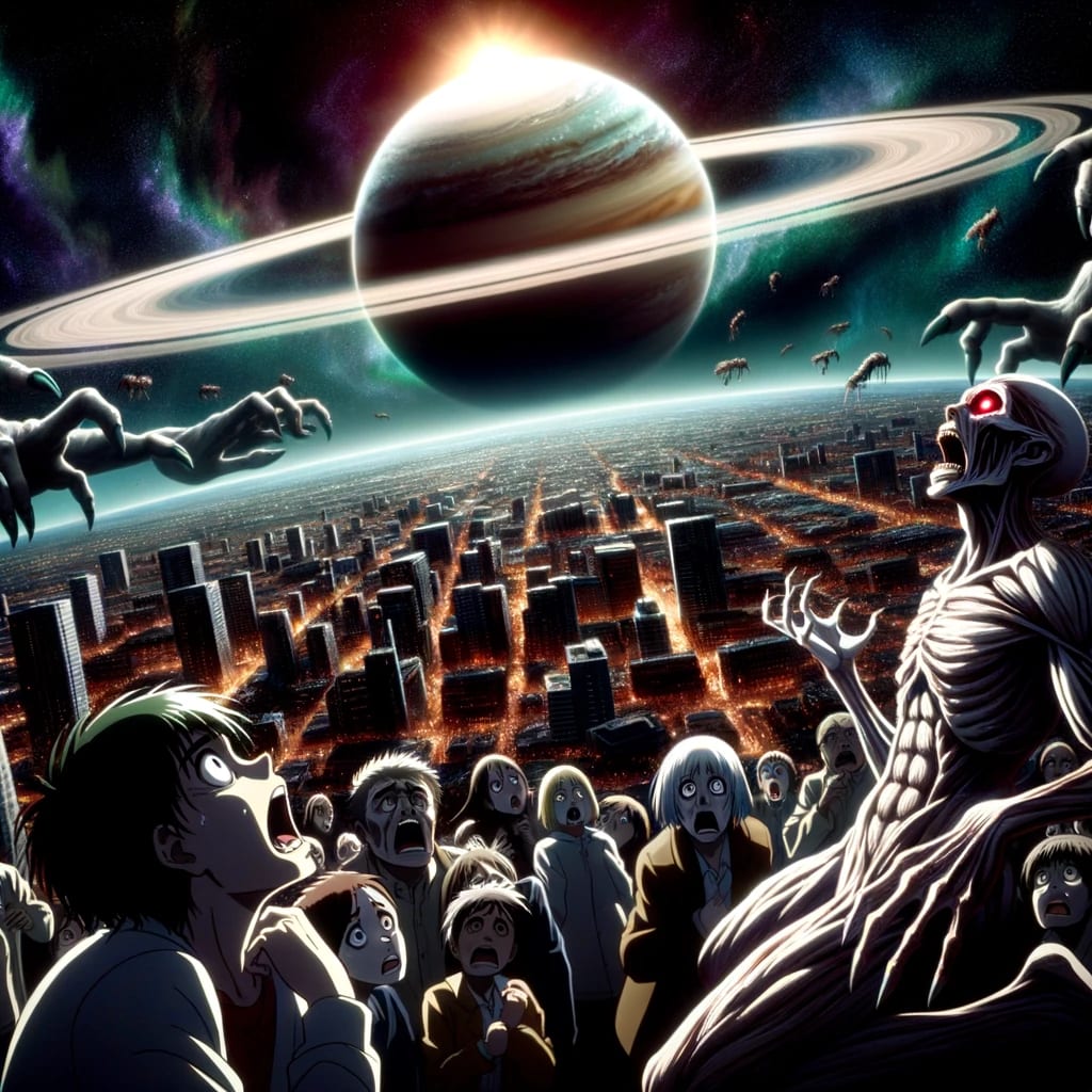 On Earth, the ensuing chaos was twofold. The transformed were multiplying, their predatory instincts asserting dominion over the remnants of human society. Simultaneously, the escalating cosmic crisis triggered waves of panic. The once benign and beautiful ringed planet was now the epicentre of a gravitational catastrophe that threatened to unmake the Solar System.