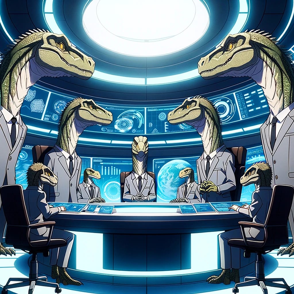 "We are predators, the strongest of all! We've crafted technologies and wonders that would make the celestial bodies themselves envious. Why must we bow down before the inevitability of extinction?" growled a distinguished Troodon scholar, his iridescent scales reflecting his inner turmoil.