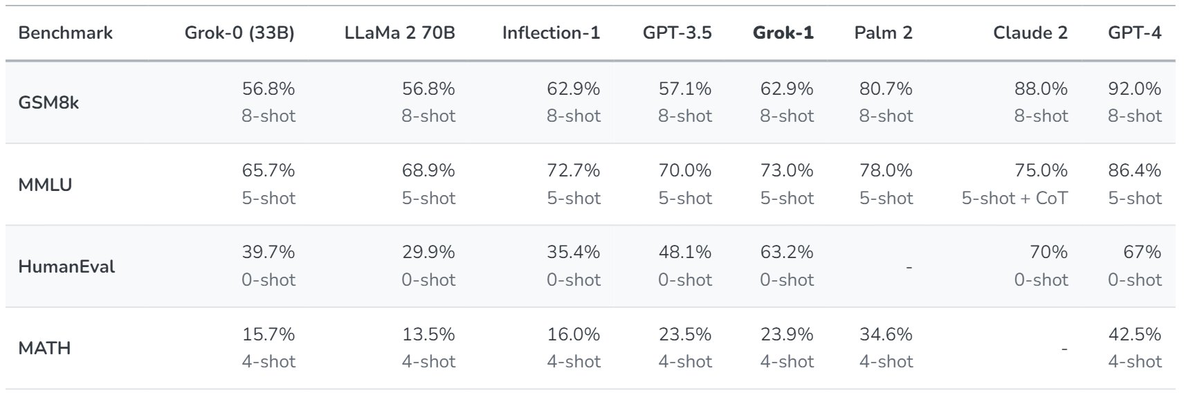 I find it very interesting that they managed to beat GPT-3.5 with only 2 months of training! This makes me think xAI might become a major player in AGI development.