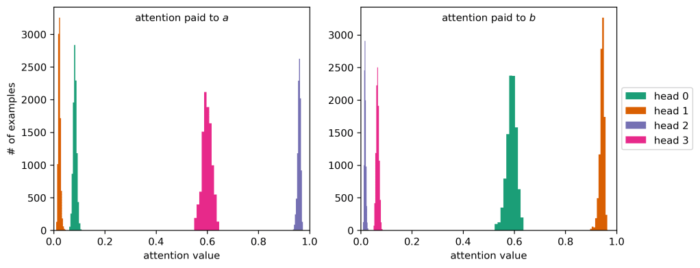 But -- great! A decent approximation for our model is to say that for heads 2 and 3 (with for heads 0 and 1), and to say for heads 1 and 0 (with for heads 2 and 3).