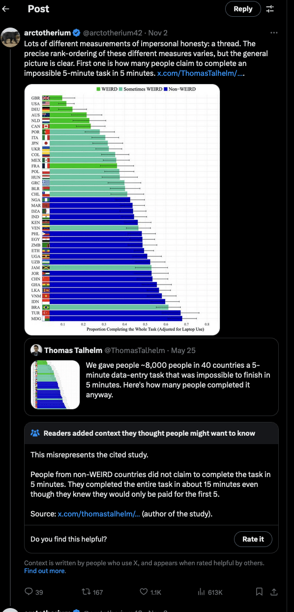 Those are dramatic differences, and there’s a very clear pattern. It’s interestingly different from the lost wallet reporting rate, which involves other dynamics too.