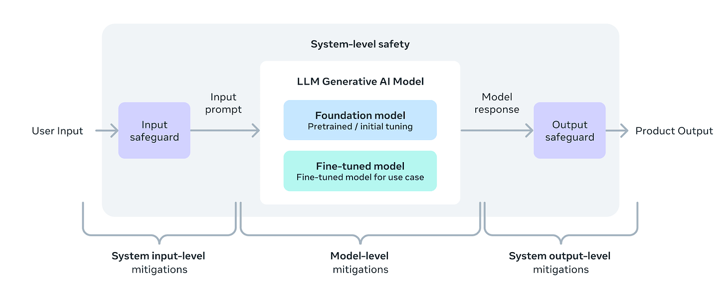 Finally, there is scenario three, where someone willing to fine tune the model, or download someone else’s fine tune, and cares not for the input safeguard or output safeguard.