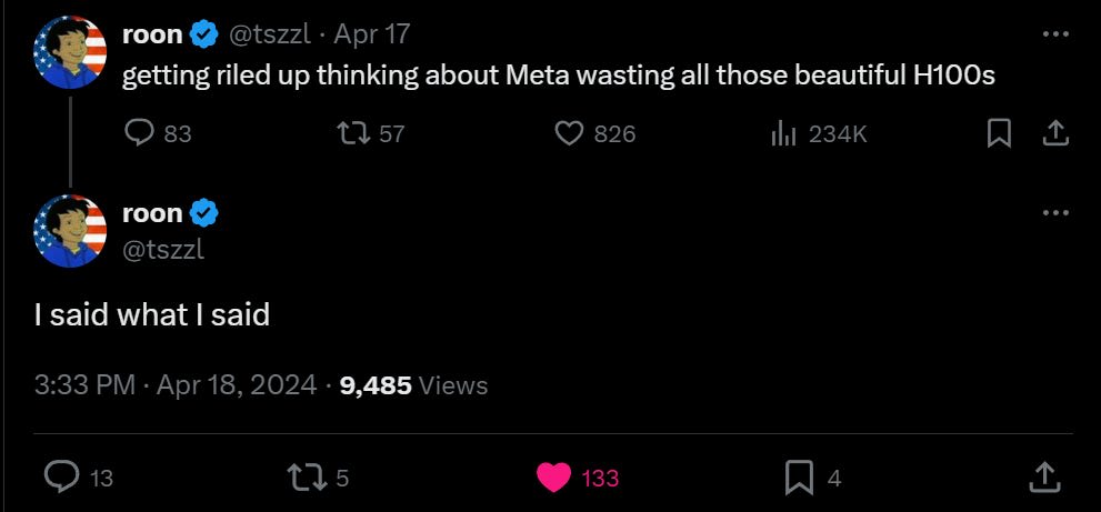 Then there is speculation from Ate-a-Pi that perhaps Zuck is being realistic because Meta does not need to raise capital, whereas others hype to raise capital. That surely matters on the margin, in both directions. Zuck would love if Altman and Amodei were less able to raise capital.