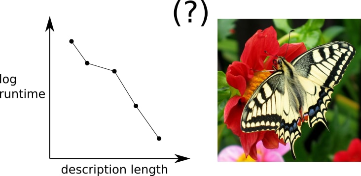 Let me see if I get this straight: see which programs simulate a system, and find the pareto boundary of such programs by ranking them the levin complexity. Then, conditioning your probability distribution on this set, compute its entropy. For a flat pareto boundary, you have a constant levin complexity, really the largest levin complexity which can simulate some system. Is that right?