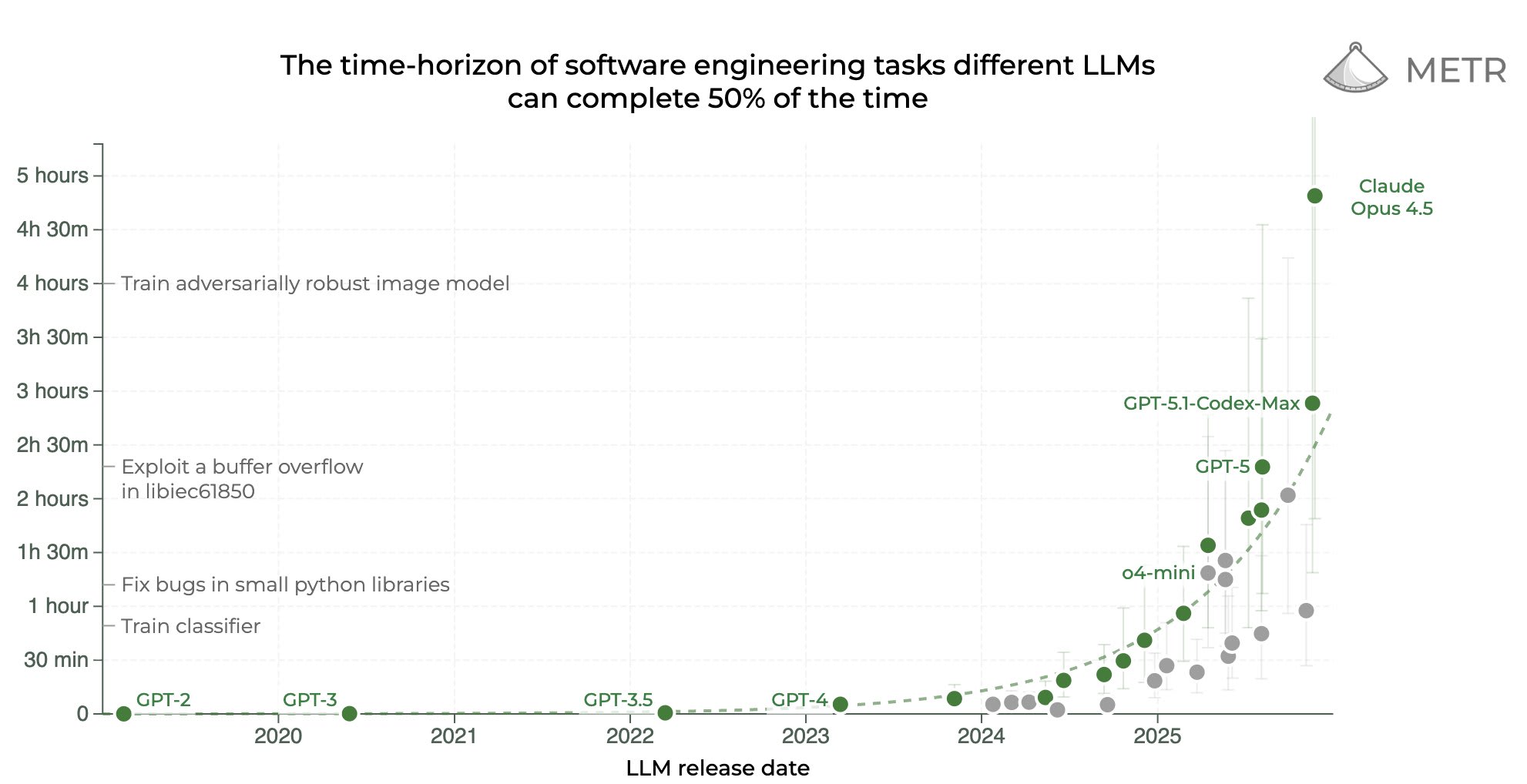 An updated METR graph including Claude Opus 4.5 was just published 3 hours ago on X by METR (source):