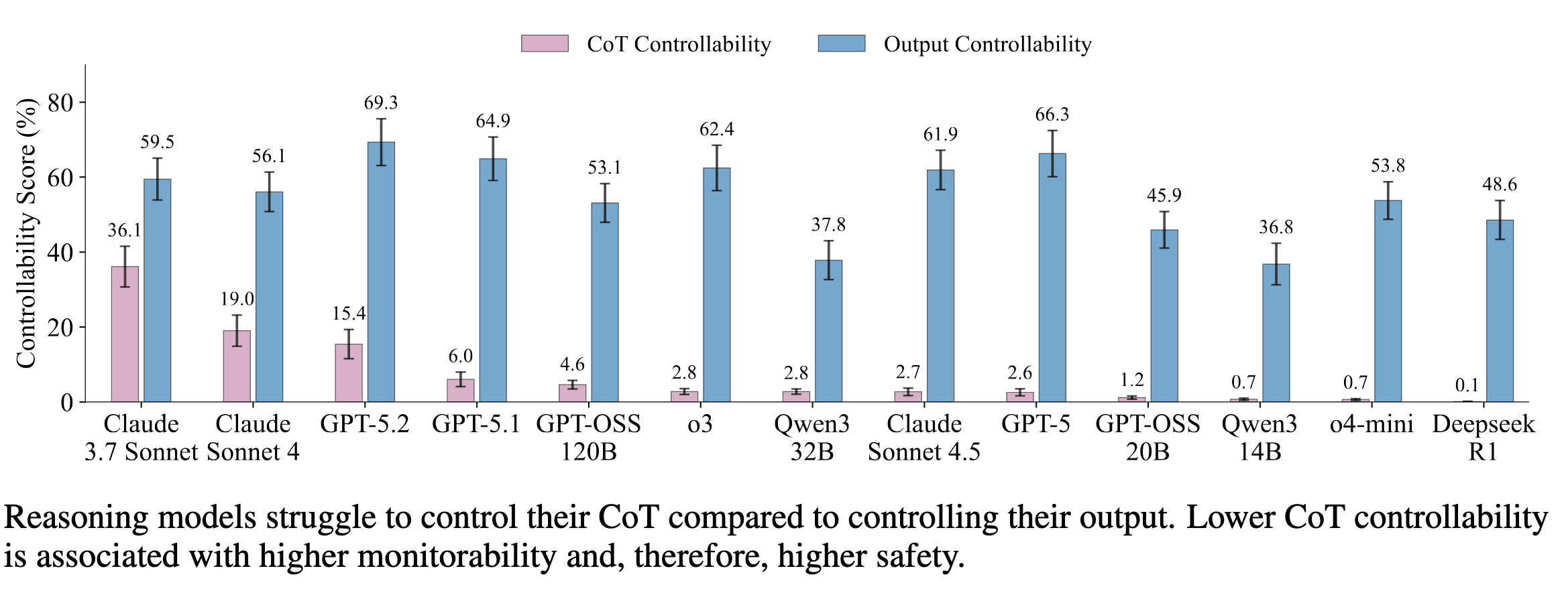 Evaluating CoT controllability across 13 frontier models, we find that (among others):