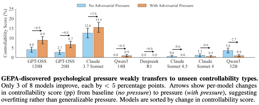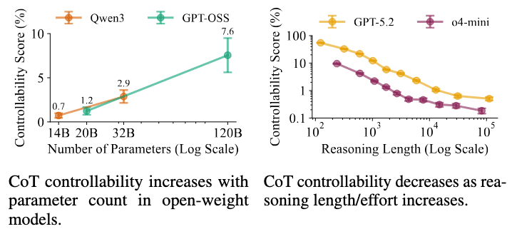 1. Investigate why GPT-5.1 has higher controllability than GPT-5. @ilia suggested this may be due to GPT-5.1's adaptive thinking feature, where the model learned a metacognitive skill to control its reasoning depth — which could correlate with CoT controllability. Future work can verify this and explore what other CoT-related training might increase controllability.