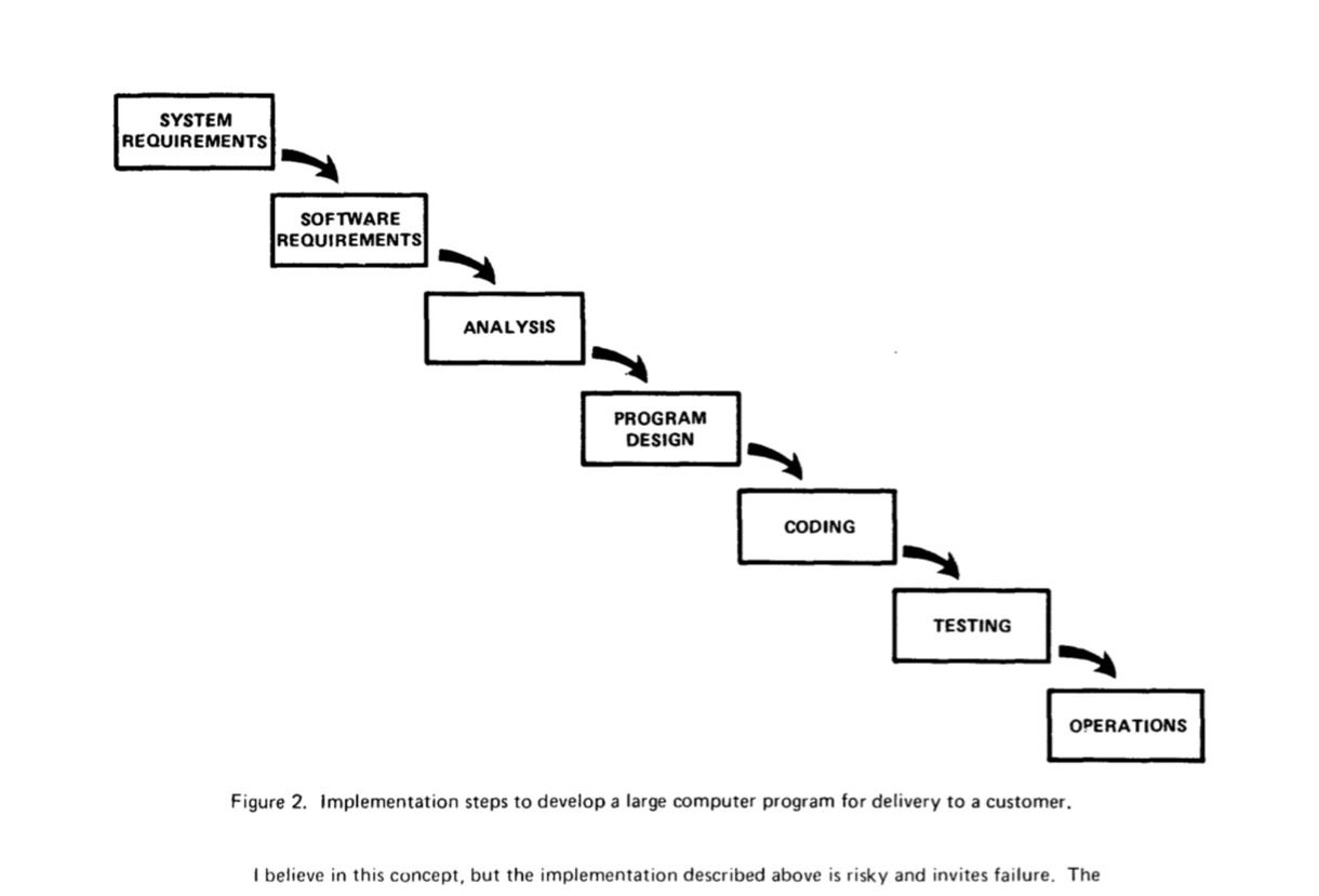 In 1970, a computer scientist named Winston Royce published a paper titled “Managing the Development of Large Software Systems.” On page two, he presented a diagram—Figure 2—that would become one of the most influential images in the history of technology management.