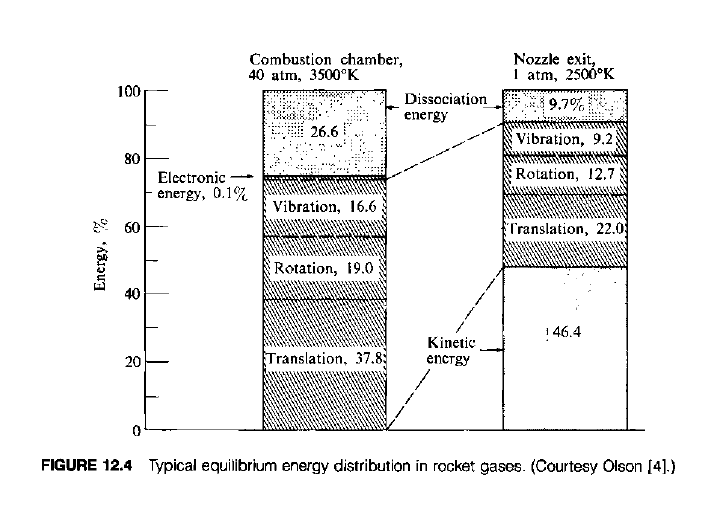 Aside from dissociation/bond energy, nearly all of the energy in the combustion chamber is kinetic. Hill's Mechanics and Thermodynamics of Propulsion gives us this very useful figure for the energy balance: