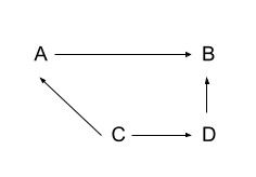 But now imagine that our model was wrong and there was actually a third variable C that was affected by A and in turn affected B. Let’s say that the true relationship between the 3 variables is as follows.